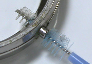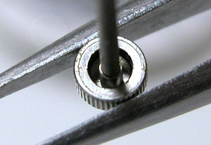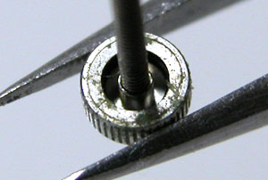 先ずは、竜頭を抜いて。竜頭の裏側をチェックします。