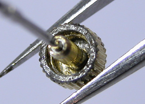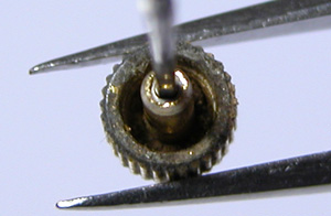 竜頭の裏側をチェックします。これが取り出した文字盤&ムーブメント。