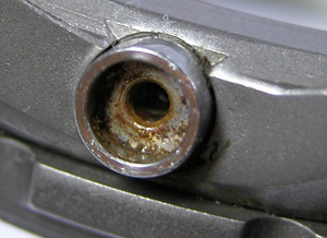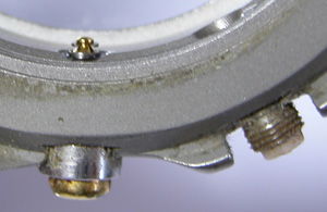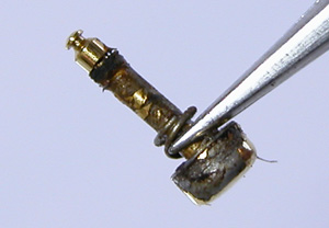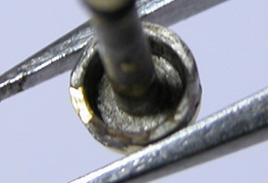 この2mmほどのパーツを外します。これが抜いたボタンですが、サビサビ。