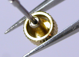 ケース内側チェック。竜頭パイプの裏側をチェックします。