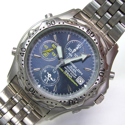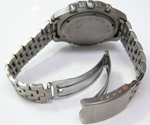 チタン板巻きバンドに三つ折れバックル。