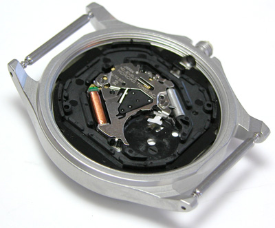 綺麗になったケースにムーブメントをもどして電池格納部をチェックします。