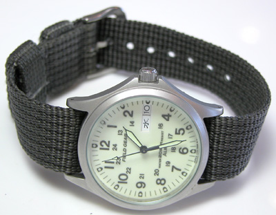 カーブガラスが綺麗ですね。ベルトは布バンドの”引き通しタイプ”。