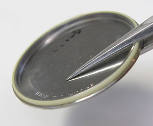 綺麗になったケースにムーブメントを戻して電池格納部をチェックします。
