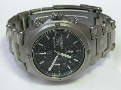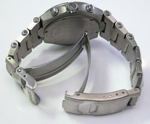 チタン無垢バンドに三つ折れダブルロック。