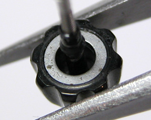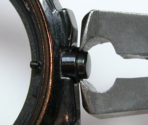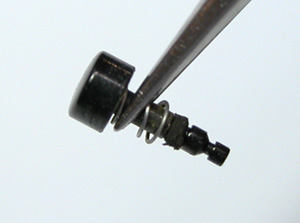 ネジのピンではなく、バネ棒ですね。外れました。この構造ですからスクリューバックを開けるのにバイスにセットした時、ベルトに爪を掛けられない。