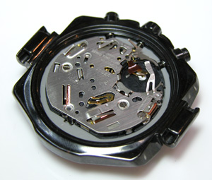 ハイ、これがムーブメント。裏蓋裏側チェック。裏側まで黒く塗られているのですね・・・