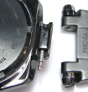 シリアルがありますから限定モデルの様です。裏蓋はスクリューバック。ベルトを外しますがセンターラグタイプです。この大きなネジで留まっているように見えますが。