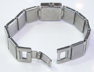 ステンレス無垢バンドにブレスバックル。