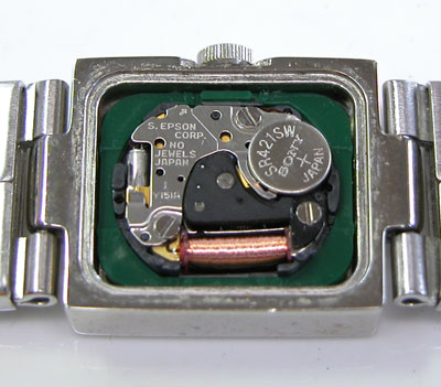 綺麗になったケースにムーブメントを戻して電池格納部をチェックします。