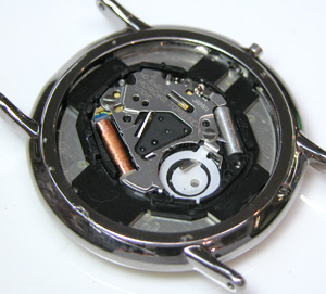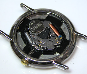 ムーブメントを戻して電池格納部をチェックします。裏蓋も綺麗になって後はパッキンを入れるのみです。