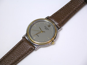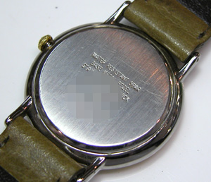 ベゼル部分のみが金色になっています。裏蓋は”はめ込みタイプ”
