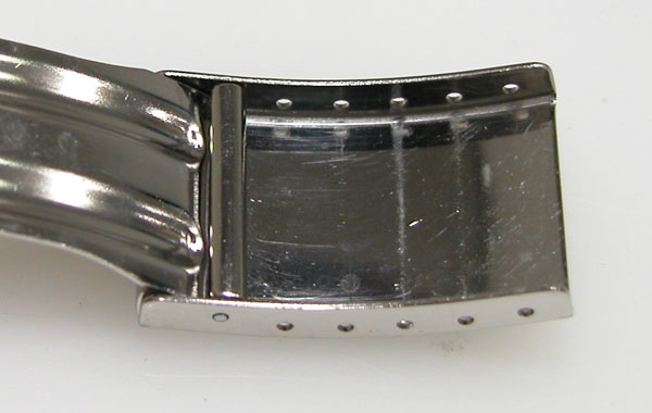 ステンレス半無垢バンドで三つ折れバックル。