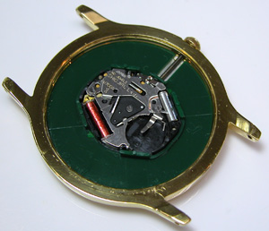 表側も磨いて綺麗になります。ムーブメントを戻して電池格納部をチェックします。