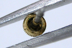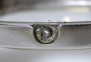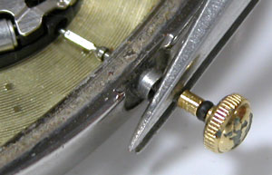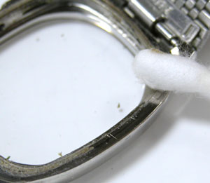 竜頭とケースの接点も掃除します。竜頭の裏側も掃除して。