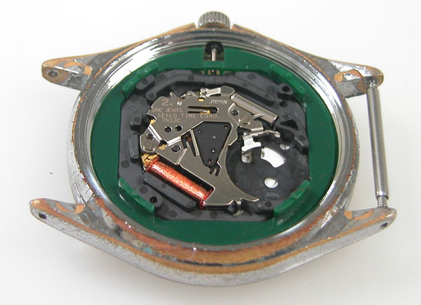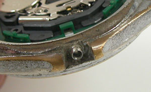 綺麗になったケースにムーブメントを戻して電池格納部をチェックします。
