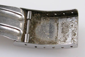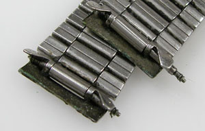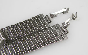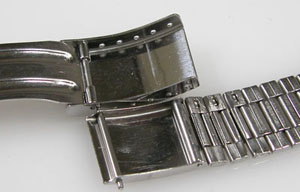 ステンレス板巻きバンドに三つ折れバックル。