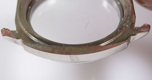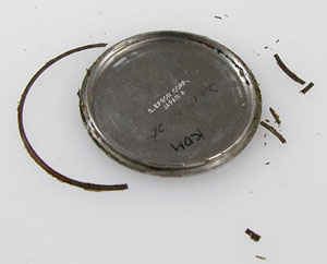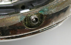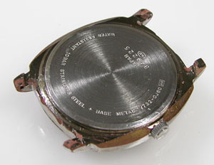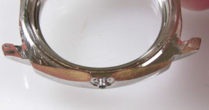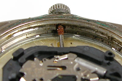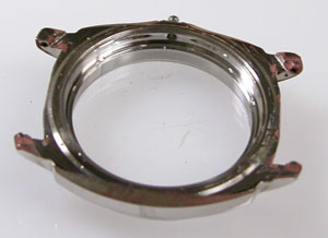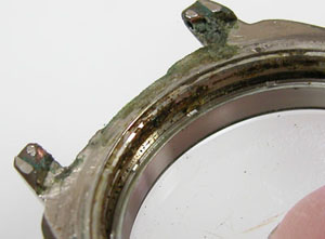 弓環やケースの内側もチェックします。ケースの内側までサビが回っておりますがパッキンがあの状態では仕方がない。