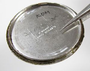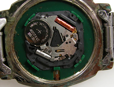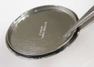 綺麗になったケースにムーブメントを戻して電池格納部をチェックします。
