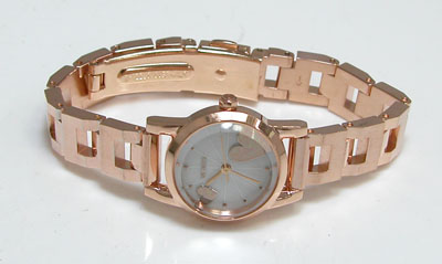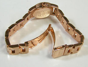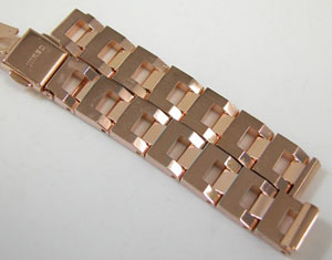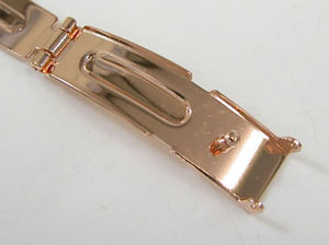ステンレス無垢バンドに三つ折れプッシュバックル。