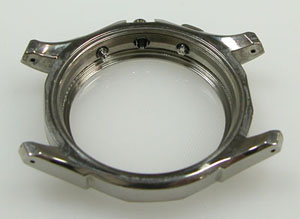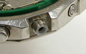 裏蓋の裏側もチェックします。この裏蓋は電波を通しやすいようにガラスになっております。