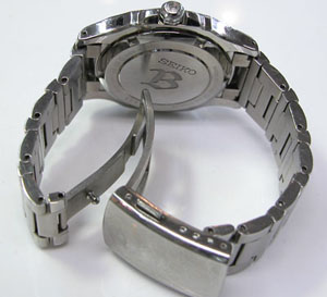 チタン無垢バンドに三つ折れプッシュバックル。