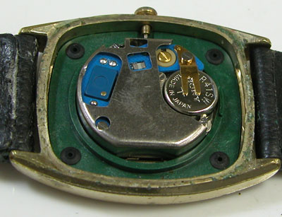 これがムーブメントですが金属プレートで覆われています。この外し方を私は知らない。昔は電池交換のみしていましたからね・・・そこまで興味を持った事が無かった。