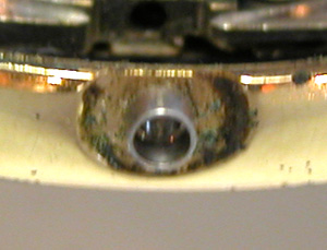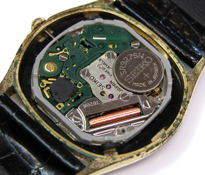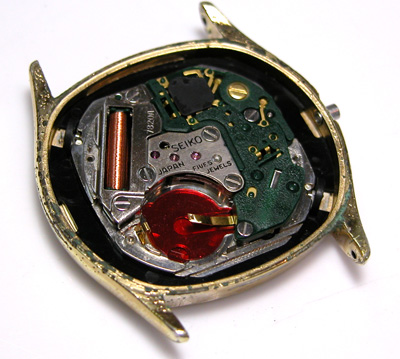 綺麗になった??ケースにムーブメントをもどして電池格納部をチェックします。