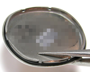 裏蓋は”はめ込みタイプ”で右がキャリバー。開け口は分かりやすく。