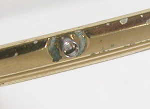 ガラスの内側に糸のようなゴミが入っているので除去のご依頼です。ただ、これはゴミが入ったものではなく「ガラス外れの前兆」接着剤が硬化して文字盤に散らばっております。