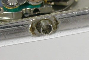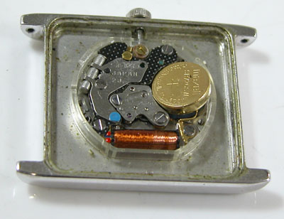 綺麗になったケースにムーブメントを戻して電池格納部をチェックします。