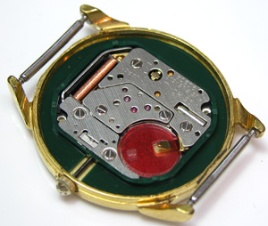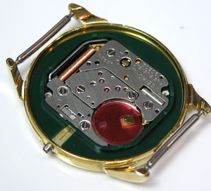 新しいパッキンを入れます。ムーブメントを戻して電池格納部をチェックします。