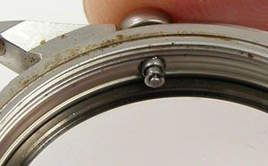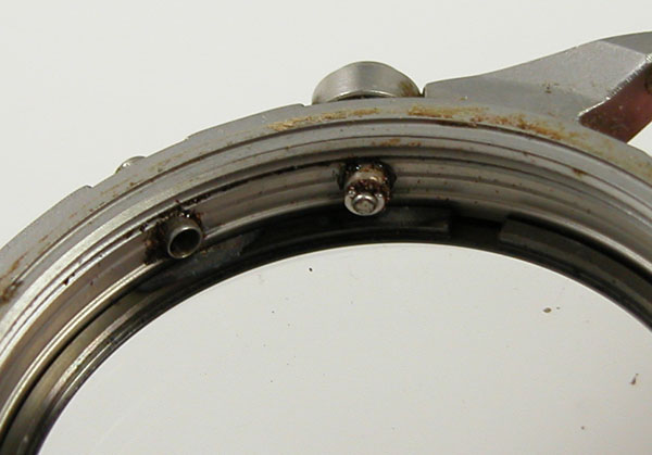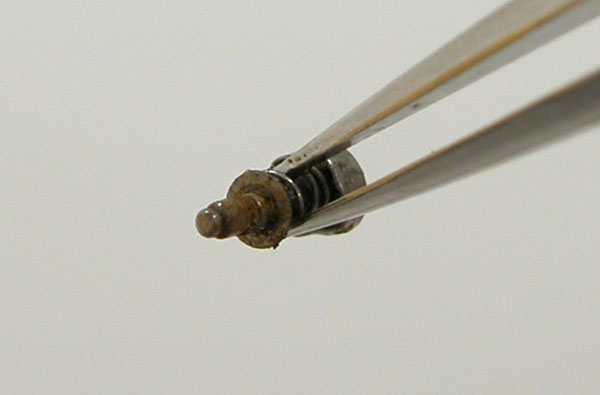 プッシュボタンが不動の箇所ですが、ムーブメント側のレバーも錆びております。