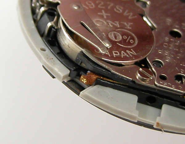 綺麗になったケースにムーブメントを戻して電池格納部をチェックします。