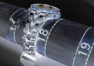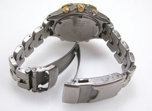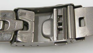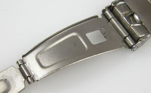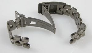 チタン無垢バンドに三つ折れプッシュバックル。