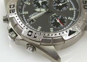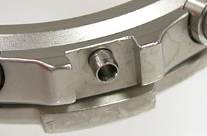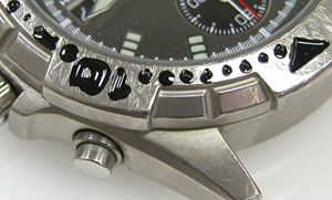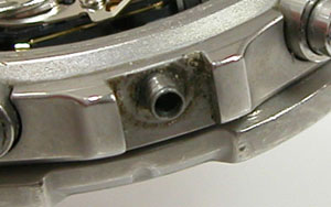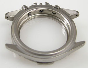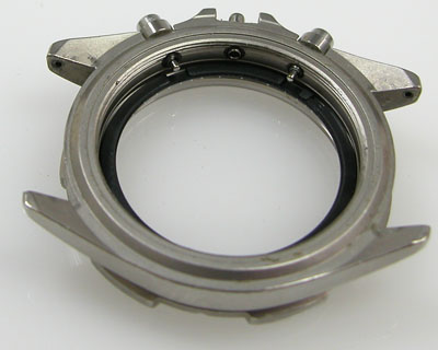 ケースの内側もチェックします。この目盛リングを外さないと洗浄が出来ませんが外すにはプッシュボタンも外す必要があります。
