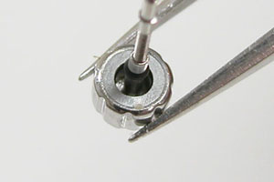 綺麗になったケースにムーブメントを戻して電池格納部をチェックします。