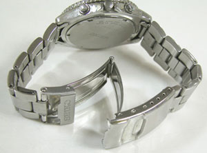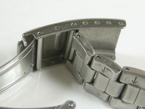 ステンレス半無垢バンドに三つ折れダブルロック。