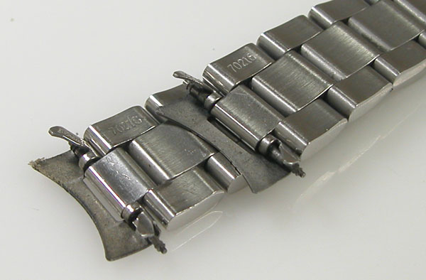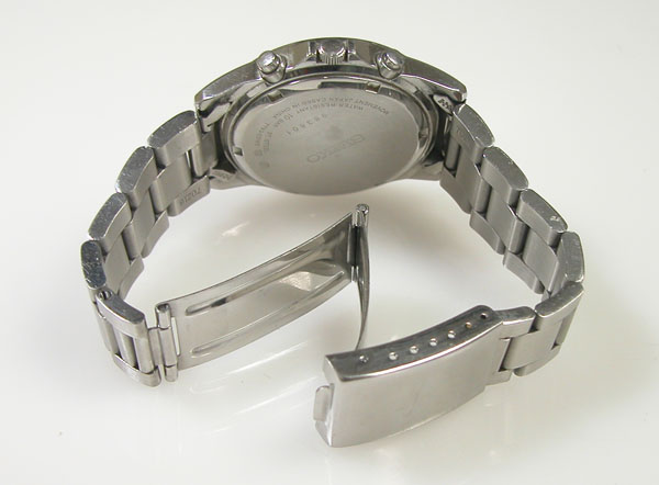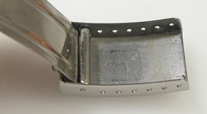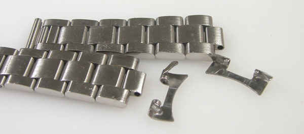 ステンレス無垢バンドに三つ折れバックル。