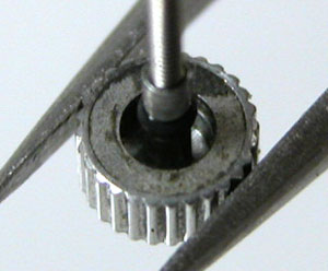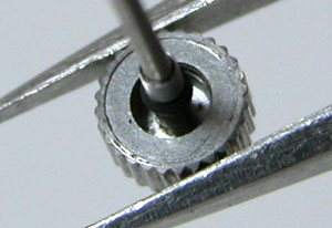 先ずは、竜頭を抜いて。竜頭の裏側チェック。