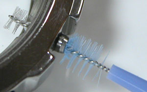 文字盤&ムーブメント取り出し。竜頭パイプを掃除します。