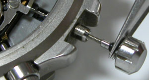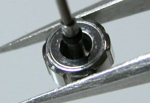 竜頭パイプもチェックします。これが文字盤&ムーブメント。