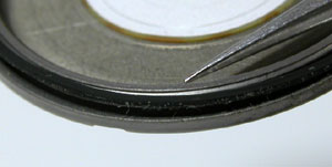 次に、竜頭を抜いて。竜頭の裏側をチェックします。
