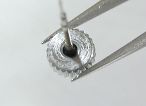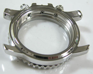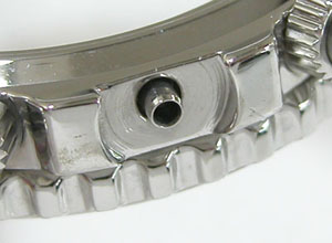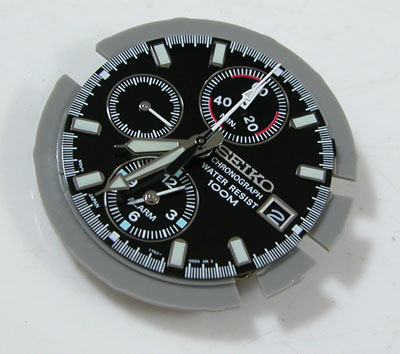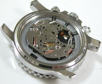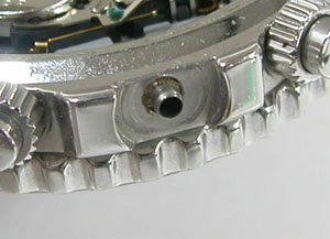 クロノグラフの目盛リングが外れましたので洗浄が可能。これが外れ無いと洗浄は裏蓋を閉める作業が増えます。