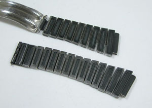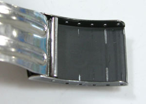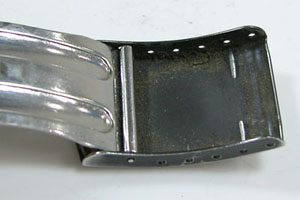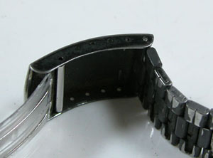 ステンレス板巻きバンドに三つ折れバックル。