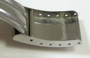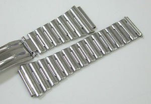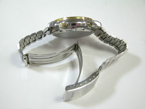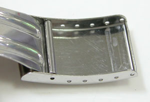 ステンレス板巻きバンドに三つ折れバックル。