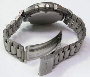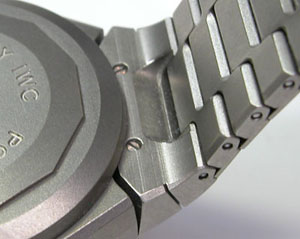 チタン無垢バンドに三つ折れバックル。