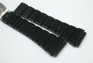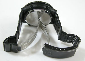 ステンレス無垢バンドに三つ折れバックル。