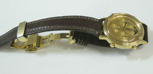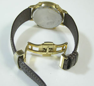 革ベルトの向きをチェックします。裏蓋はスクリューバックで。