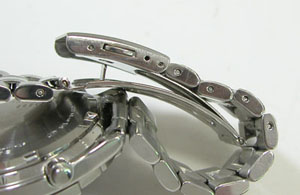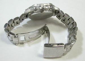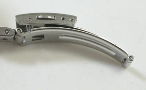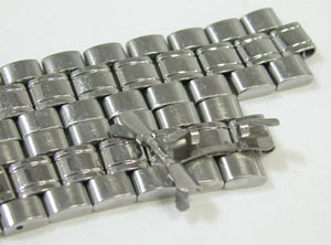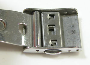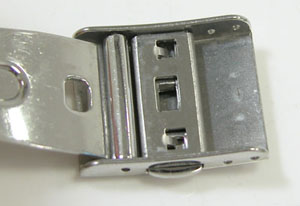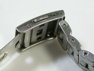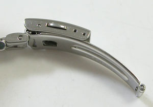 ステンレス板巻きバンドに三つ折れプッシュバックル。